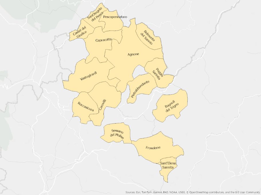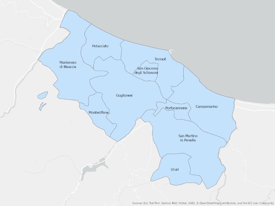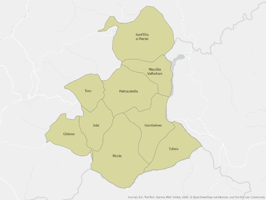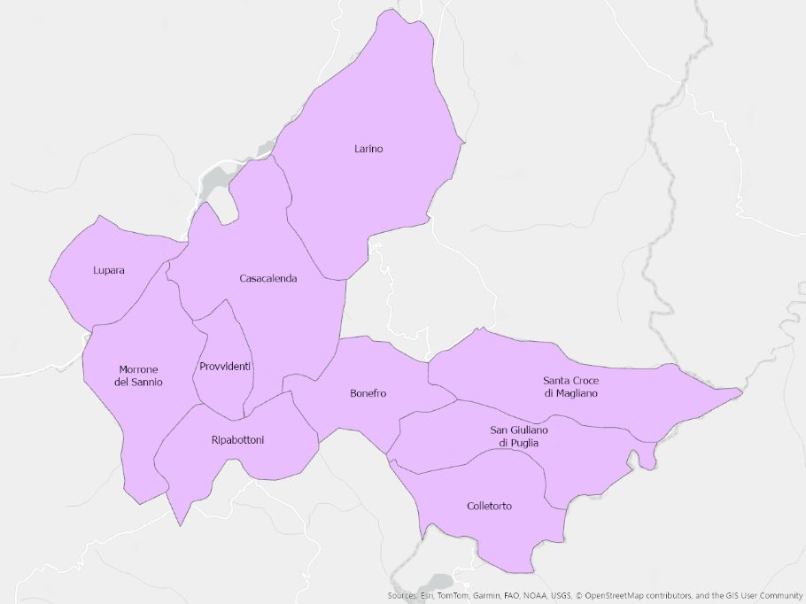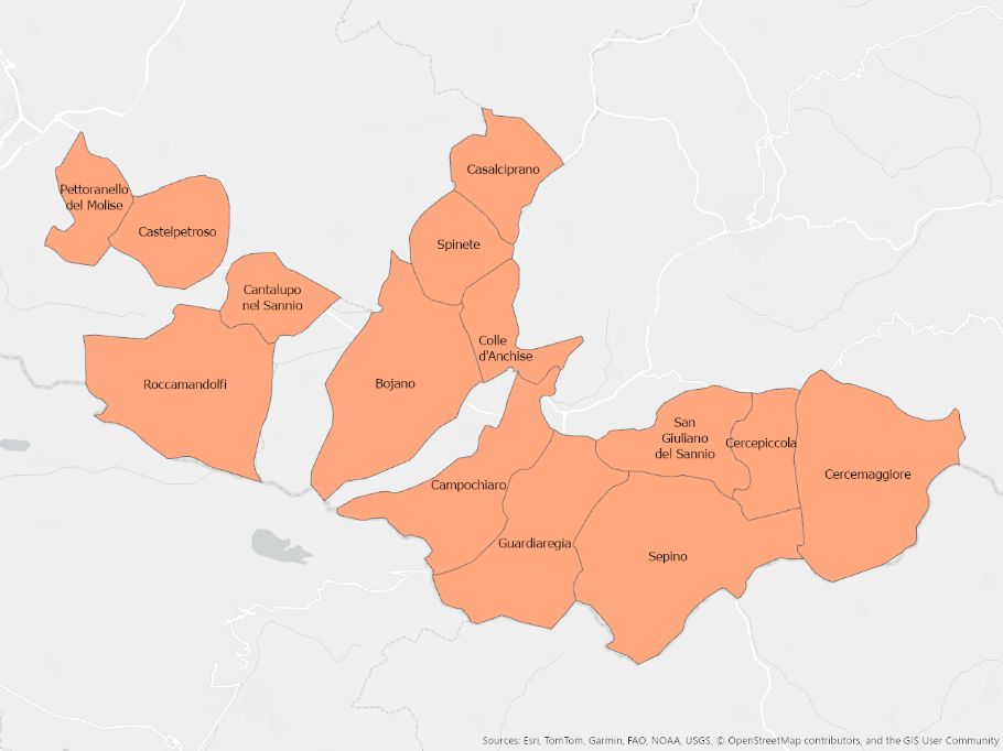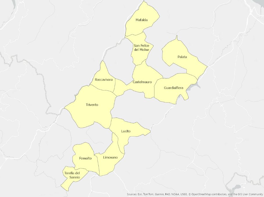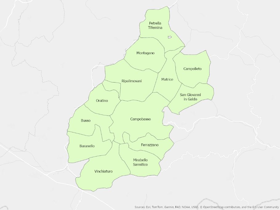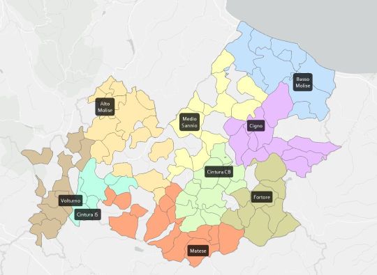 Illustrazione dei comuni molisani suddivisi per ambito